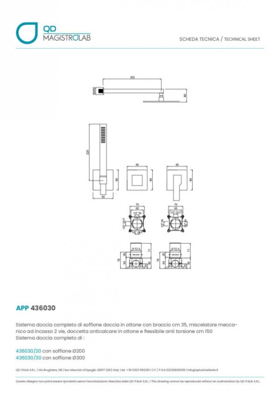 Душевой набор QD MagistroLab App 436030 с верхним душем 300x300 мм