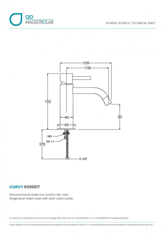 Смеситель для биде QD MagistroLab Curvy 6520017W со сливом click-clack и ручкой с накаткой