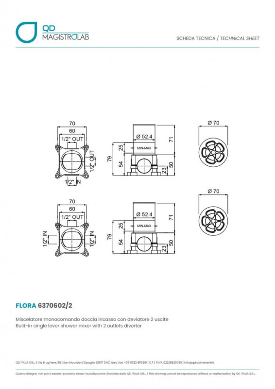 Настенный встраиваемый смеситель для душа QD MagistroLab Flora 6370602/2F на 2 выхода