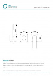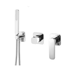 Настенный встраиваемый смеситель для ванны QD MagistroLab Smooth 2970402 с ручным душем и гибким шлангом серебристого цвета, переключателем на лейку душа