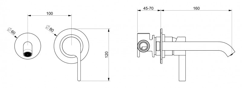 Длина излива: 160 мм